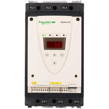 Der Sanftanlasser Altistart 22 unterstützt den geführten Hochlauf und Auslauf von Drehstrom-Asynchron-Motoren mit Käfigläufer für Nennleistungen zwischen 4 und 400 kW mittels der Spannung und des Anlaufmoments.