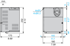 The drive must be mounted in a dust and damp proof enclosure in certain environmental conditions, such as dust, corrosive gases, high humidity with risk of condensation and dripping water, splashing liquid, etc.This enables the drive to be used in an enclosure where the maximum internal temperature reaches 50°C.