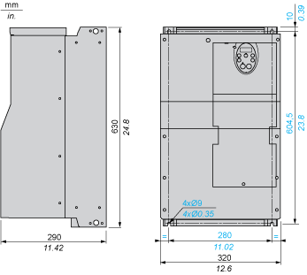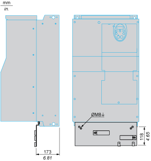 By removing the protective blanking cover from the top of the drive, the degree of protection for the drive becomes IP21. The protective blanking cover may vary according to the drive model, see opposite.