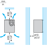 Check that there is sufficient ventilation. If there is not, install a forced ventilation unit with a filter. The openings and/or fans must provide a flow rate at least equal to that of the drive fans (refer to the product characteristics).