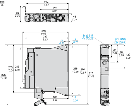 NOTE: The product overall dimension, including GV2 adapter and EMC plate mounted, becomes 424 mm (16.7 in.)
