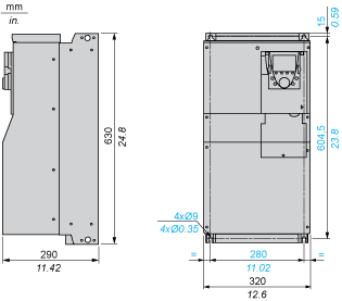 UL Type 1/IP 20 DrivesDimensions without Option Card