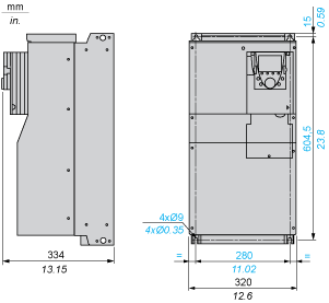 The protective blanking cover must be removed from ATV 71PN4Z drives when they are mounted in a dust and damp proof enclosure.