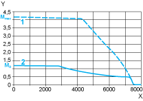 XSpeed in rpmYTorque in Nm1Peak torque2Continuous torque
