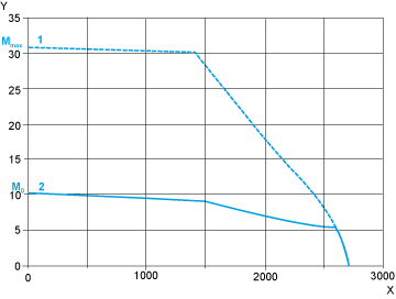 XSpeed in rpmYTorque in Nm1Peak torque2Continuous torque