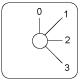 Spring return position: for a switching angle of 90°, spring return is over 30° after the last position (for a maximum of 3 simultaneous contacts).