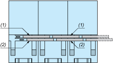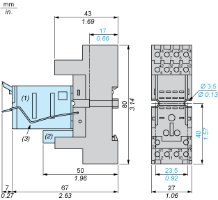 (1)Relays(2)Protection module(3)Maintaining clamp(4)2 elongated holes Ø 3.5 mm x 6.5 mm / Ø 0.13 in. x 0.25 in.