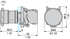 (1)Diameter on finished panel or support(2)40 mm min. / 1.57 in. min.(3)30 mm min. / 1.18 in. min.(4)Ø 22.5 mm / 0.89 in. recommended (Ø 22.3 mm 0+0.4 / 0.88 in. 0+0.016)(5)45 mm min. / 1.78 in. min.(6)32 mm min. / 1.26 in. min. | |