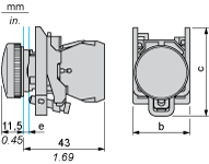 e :clamping thickness: 1 to 6 mm / 0.04 to 0.24 in.b :30 mm / 1.18 in.c :46.5 mm / 1.83 in.