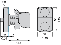 (1)Diameter on finished panel or support(2)For selector switches and Emergency stop buttons, use of an anti-rotation plate type ZB5AZ902 is recommended.(3)Ø22.5 mm recommended (Ø22.3 0+0.4) / Ø0.89 in. recommended (Ø0.88 in. 0+0.016)