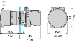 (1)Diameter on finished panel or support(2)For selector switches and Emergency stop buttons, use of an anti-rotation plate type ZB5AZ902 is recommended.(3)Ø22.5 mm recommended (Ø22.3 0+0.4) / Ø0.89 in. recommended (Ø0.88 in. 0+0.016)