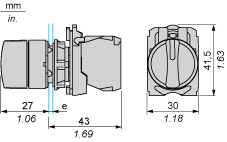 (1)Diameter on finished panel or support(2)For selector switches and Emergency stop buttons, use of an anti-rotation plate type ZB5AZ902 is recommended.(3)Ø22.5 mm recommended (Ø22.3 0+0.4) / Ø0.89 in. recommended (Ø0.88 in. 0+0.016)