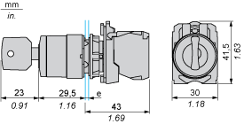 (1)Diameter on finished panel or support(2)For selector switches and Emergency stop buttons, use of an anti-rotation plate type ZB5AZ902 is recommended.(3)Ø22.5 mm recommended (Ø22.3 0+0.4) / Ø0.89 in. recommended (Ø0.88 in. 0+0.016)