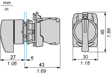 (1)Diameter on finished panel or support(2)For selector switches and Emergency stop buttons, use of an anti-rotation plate type ZB5AZ902 is recommended.(3)Ø22.5 mm recommended (Ø22.3 0+0.4) / Ø0.89 in. recommended (Ø0.88 in. 0+0.016)