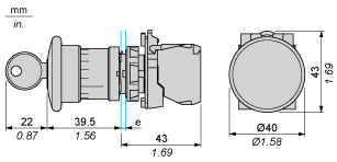 (1)Diameter on finished panel or support(2)For selector switches and Emergency stop buttons, use of an anti-rotation plate type ZB5AZ902 is recommended.(3)Ø22.5 mm recommended (Ø22.3 0+0.4) / Ø0.89 in. recommended (Ø0.88 in. 0+0.016)
