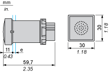 (1)Diameter on finished panel or support(2)For selector switches and Emergency stop buttons, use of an anti-rotation plate type ZB5AZ902 is recommended.(3)Ø22.5 mm recommended (Ø22.3 0+0.4) / Ø0.89 in. recommended (Ø0.88 in. 0+0.016)