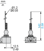 (1)Tapped entry for M16 x 1.5(2)2 elongated holes Ø 4.3 x 6.3 mm on 22 mm centres, 2 holes Ø 4.3 on 20 mm centres.(3)2 x Ø 3 holes for support studs, depth 4 mm.
