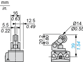 (1)Tapped entry for M16 x 1.5(2)2 elongated holes Ø 4.3 x 6.3 mm on 22 mm centres, 2 holes Ø 4.3 on 20 mm centres.(3)2 x Ø 3 holes for support studs, depth 4 mm.