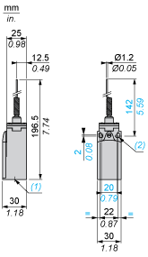 (1)1 tapped entry for M20 x 1.5(2)Ø: 2 elongated holes Ø 4.3 x 6.3 on 22 mm centres, 2 holes Ø 4.3 on 20 mm centres.
