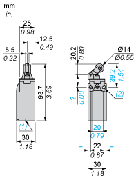 (1)1 tapped entry for Pg 11 cable gland(2)Ø: 2 elongated holes Ø 4.3 x 6.3 on 22 mm centres, 2 holes Ø 4.3 on 20 mm centres.