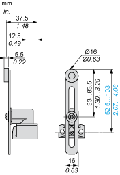 (1)Tapped entry for Pg 11 cable gland(2)2 elongated holes Ø 4.3 x 6.3 mm on 22 mm centres, 2 holes Ø 4.3 on 20 mm centres.(3)2 x Ø 3 holes for support studs, depth 4 mm.