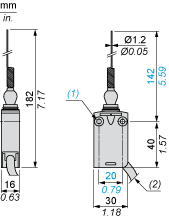 (1)2 fixing holes Ø 4.2 mm, counterbored Ø 8 mm by 4 mm deep.(2)External diameter of cable 7.5 mm.