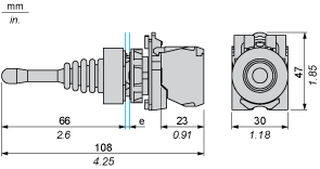 (1)Diameter on finished panel or support(2)For selector switches and Emergency stop buttons, use of an anti-rotation plate type ZB5AZ902 is recommended.(3)Ø22.5 mm recommended (Ø22.3 0+0.4) / Ø0.89 in. recommended (Ø0.88 in. 0+0.016)