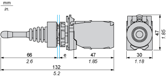 (1)Diameter on finished panel or support(2)For selector switches and Emergency stop buttons, use of an anti-rotation plate type ZB5AZ902 is recommended.(3)Ø22.5 mm recommended (Ø22.3 0+0.4) / Ø0.89 in. recommended (Ø0.88 in. 0+0.016)