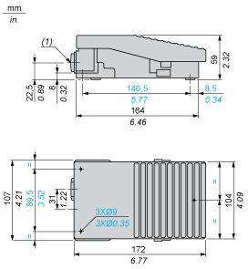 (1)2 tapped entries for n° 16 (Pg 16) cable gland. For ISO M20, use adaptor DE9RA620.