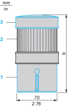 (1)Base unit XVBC21, to be ordered separately(2)Illuminated or audible signalling unit(3)Cover (supplied with XVBC21 base unit)