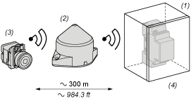 The range is reduced if the transmitter is placed in a metal enclosure (reduction factor:approx 10%).