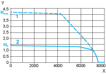 XSpeed in rpmYTorque in Nm1Peak torque2Continuous torque