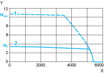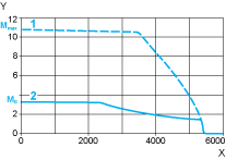 XSpeed in rpmYTorque in Nm1Peak torque2Continuous torque
