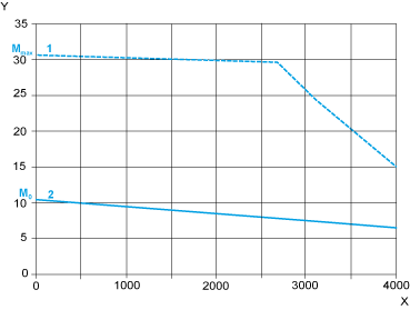 XSpeed in rpmYTorque in Nm1Peak torque2Continuous torque