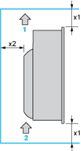 x1> 100 mm (3.93 in.)x2> 50 mm (1.96 in.)x3> 10 mm (0.39 in.) | |
