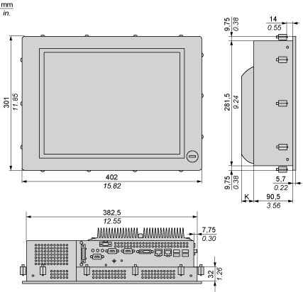 383.5 + 1/ 0 mm (15.10 + 0.04/ 0 in.) | 282.5 + 1/ 0 mm (11.12 + 0.04/ 0 in.) | 1.6...10 mm (0.06...0.39 in.) |