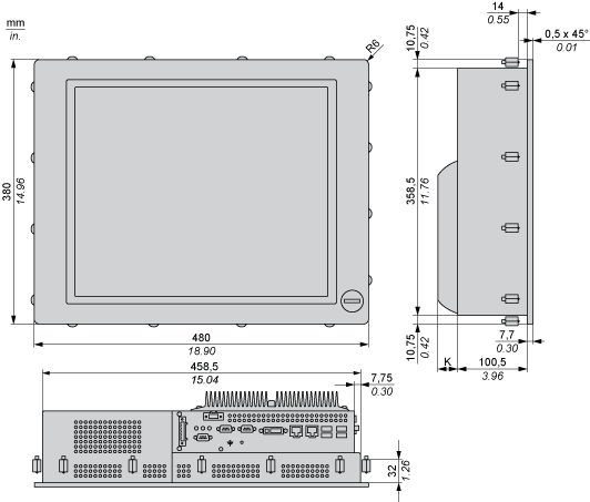 459.5 ± 0.5 mm (18.09 ± 0.02 in.) | 359.5 ± 0.5 mm (14.15 ± 0.02 in.) | 1.6...10 mm (0.06...0.39 in.) |