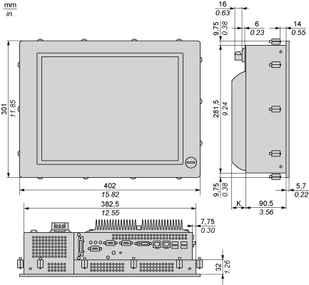 383.5 + 1/ 0 mm (15.10 + 0.04/ 0 in.) | 282.5 + 1/ 0 mm (11.12 + 0.04/ 0 in.) | 1.6...10 mm (0.06...0.39 in.) |