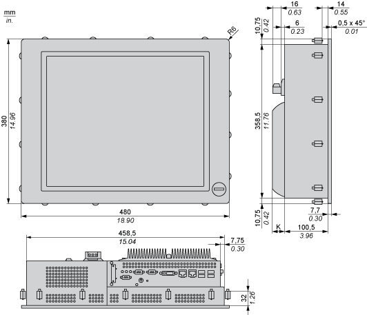 459.5 ± 0.5 mm (18.09 ± 0.02 in.) | 359.5 ± 0.5 mm (14.15 ± 0.02 in.) | 1.6...10 mm (0.06...0.39 in.) |