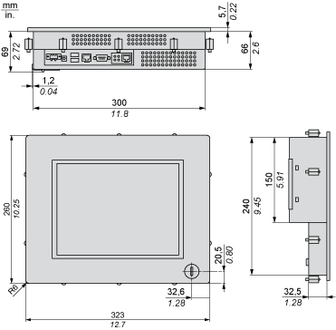 303 ± 0.5 mm (11.85 ± 0.02 in.) | 243 ± 0.5 mm (9.49 ± 0.02 in.) | 1.6...10 mm (0.06...0.39 in.) |