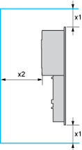 x1> 100 mm (> 3.93 in.)x2> 50 mm (> 1.96 in.)x3> 10 mm (> 0.39 in.) | |