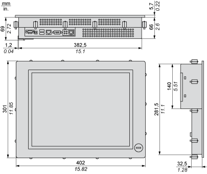 383.5 + 1/ 0 mm (15.10 + 0.04/ 0 in.) | 282.5 + 1/ 0 mm (11.12 + 0.04/ 0 in.) | 1.6...10 mm (0.06...0.39 in.) |