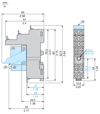 (1)Relays(2)Protection module(3)Maintaining clamp(4)Legend