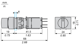 Rectangular Head Selector Switch, Standard HandleDimensions