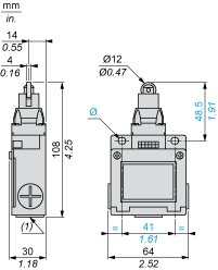 (1)3 tapped entries Pg 11 cable glandØ :2 elongated holes Ø 5.2 x 6.2