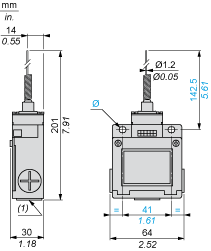 (1)3 tapped entries Pg 11 cable glandØ :2 elongated holes Ø 5.2 x 6.2