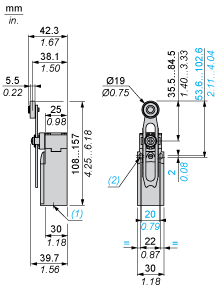 (1)1 tapped entry for Pg 11 cable gland(2)Ø: 2 elongated holes Ø 4.3 x 6.3 on 22 mm centres, 2 holes Ø 4.3 on 20 mm centres.